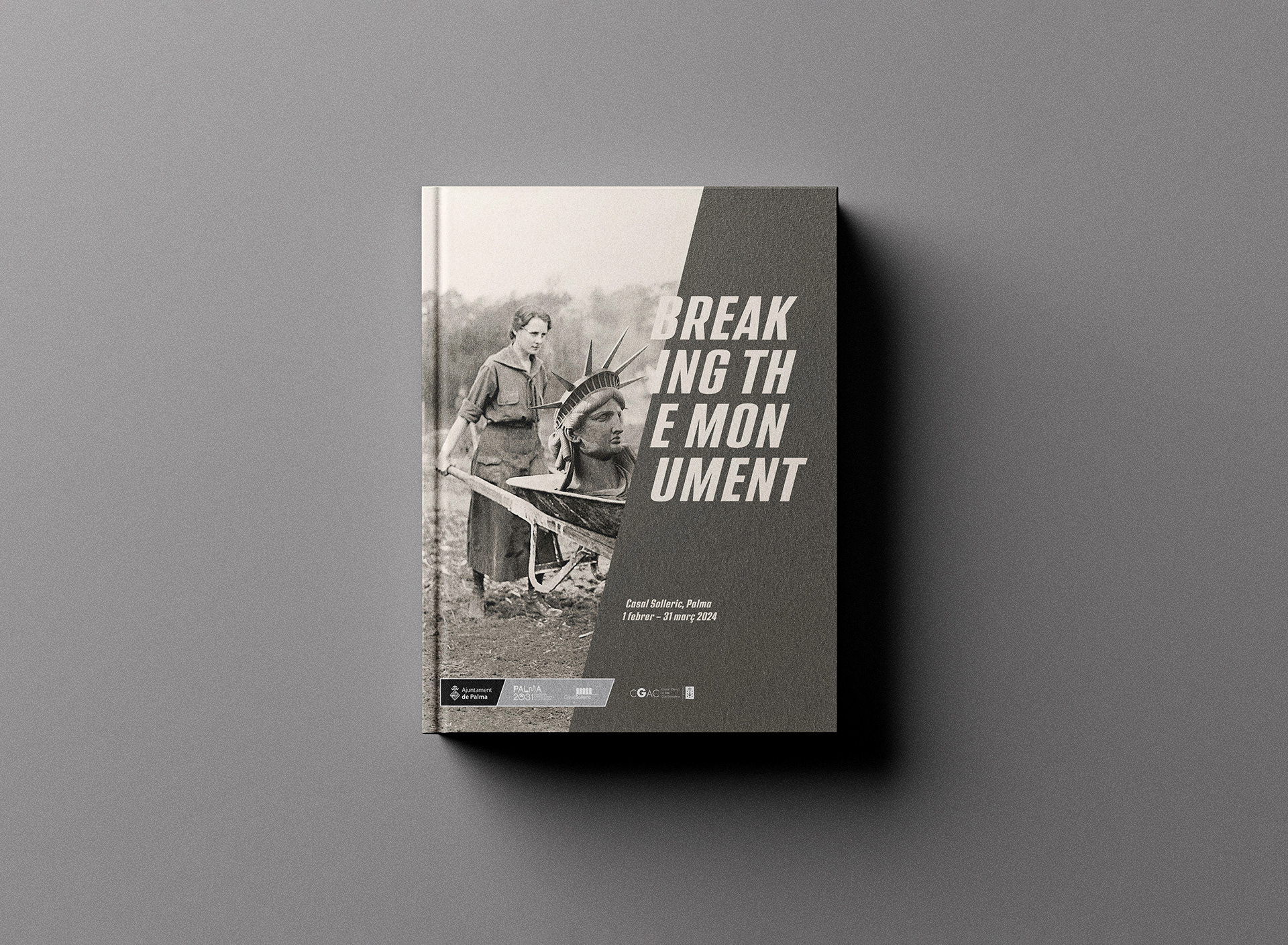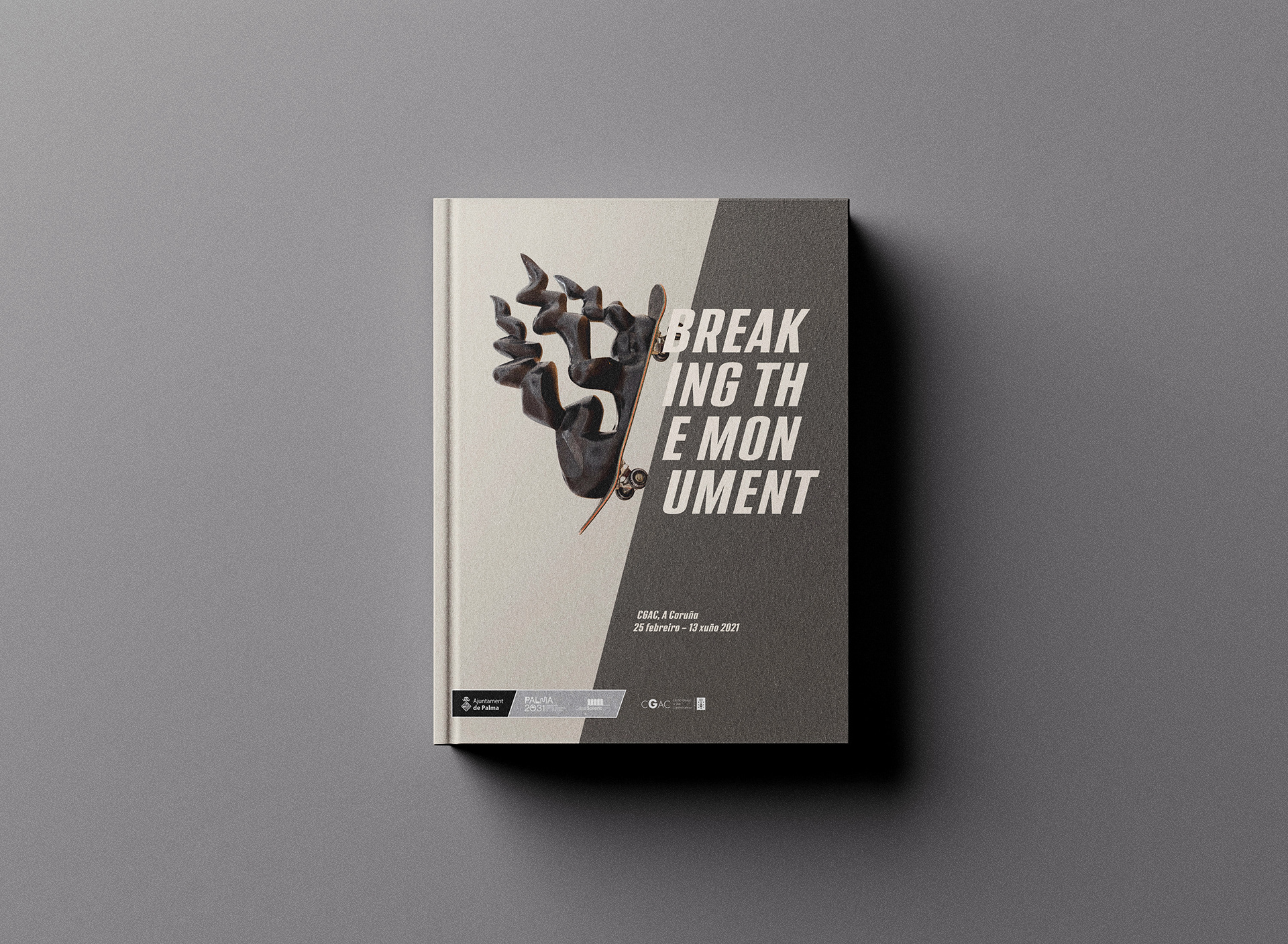 Catálogo para las exposiciones “Breaking the Monument” en el Casal Solleric y en el CGAC. Catálogo “flip book” con 2 portadas que se leen girando 180 grados. Catalán, castellano, gallego e inglés. 21,8 x 28 cm, 200 páginas, tapas duras, 300 ejemplares.