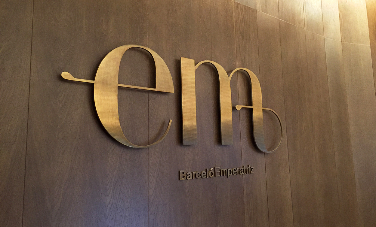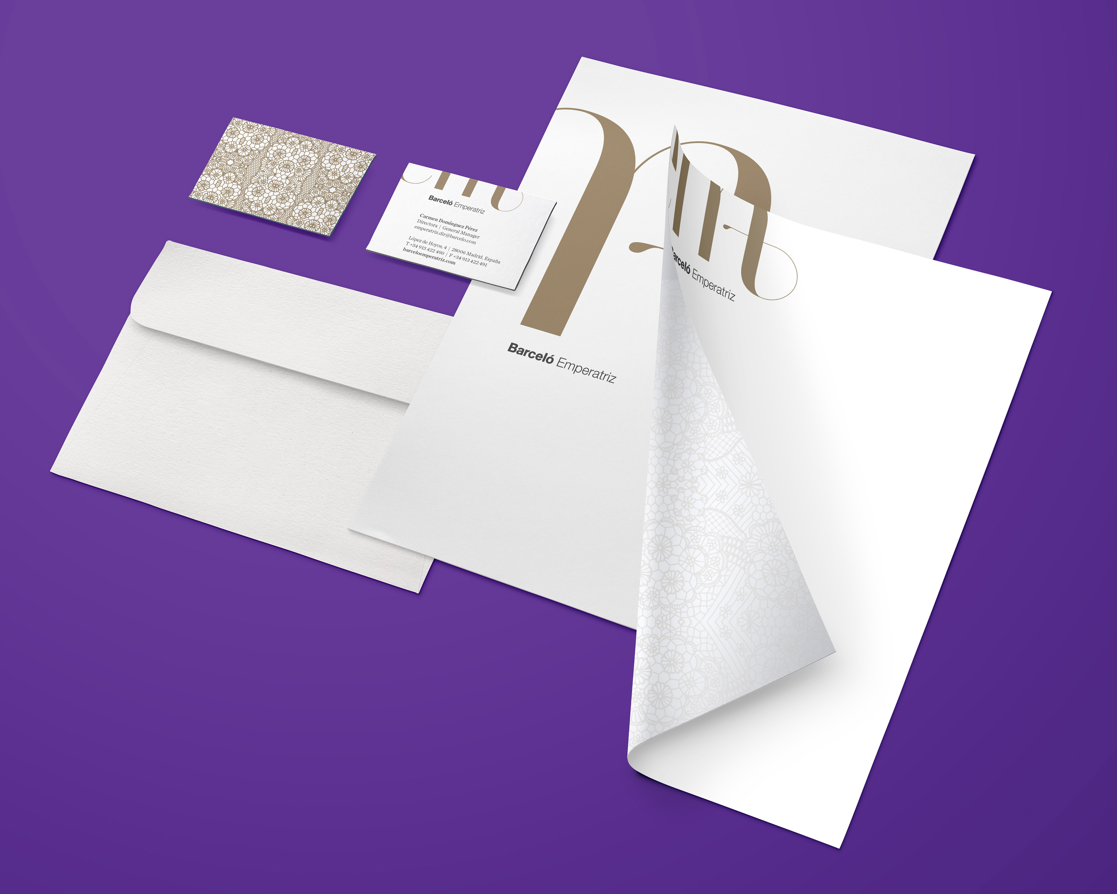 Proyecto de señalización para el hotel Barceló Emperatriz en Madrid. Eugenia de Montijo fue una granadina que llegó a ser emperatriz de Francia al casarse con Napoleón III. La papelería juega con el chantilly que ella puso de moda en toda Europa.