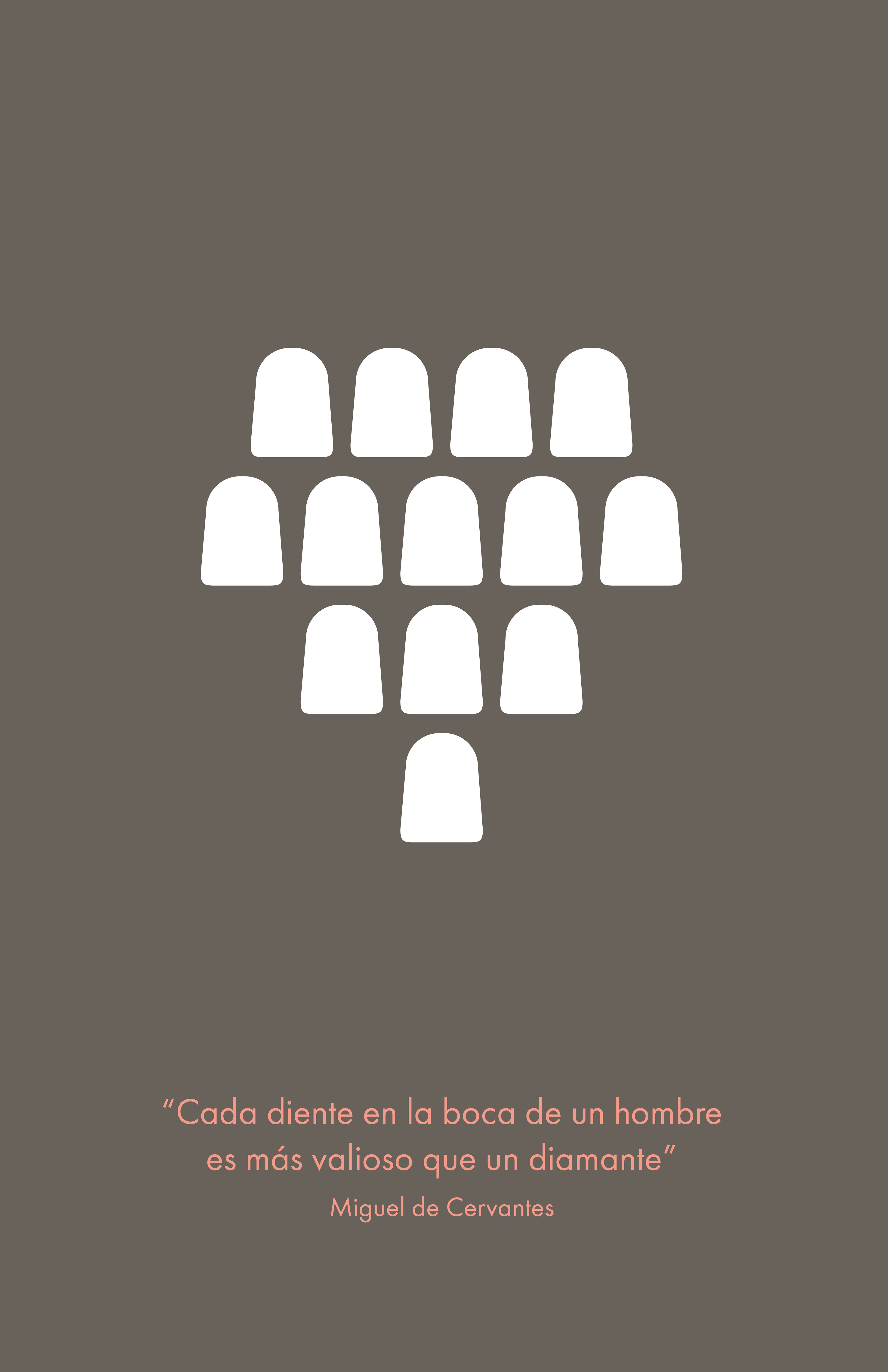 Imagen corporativa para clínica dental. Para la decoración del nuevo local, se ha trabajado en unas ilustraciones hechas a partir de la síntesis de un diente frontal -sinónimo de sonrisa y estética- en contra de la muela, tan usada en el sector y sinónimo de dolor. Corporate image for dental clinic. For the decoration of the new premises, we have worked on some illustrations made from the synthesis of a front tooth - synonymous with a smile and aesthetics - against the molar, so used in the sector and synonymous with pain.