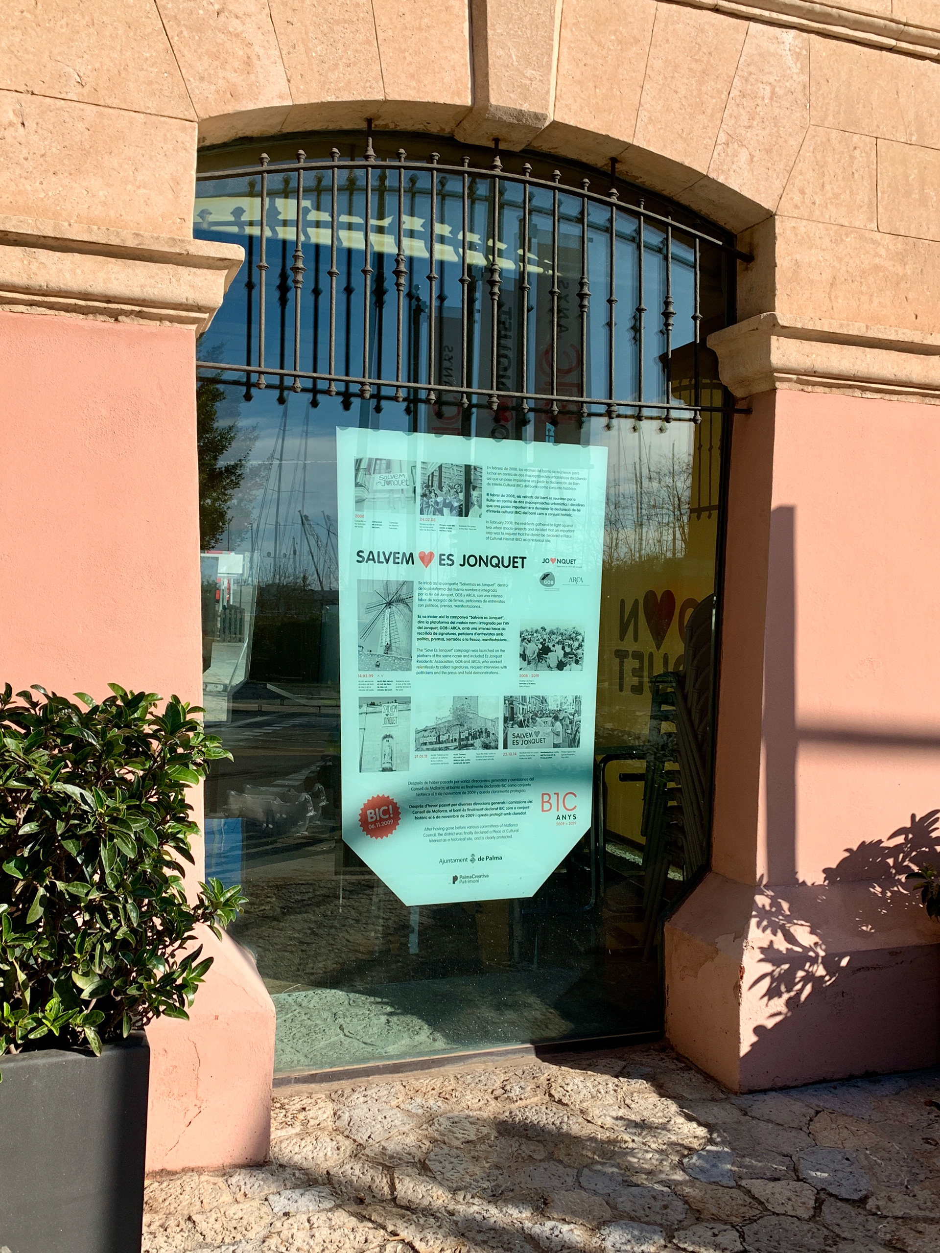 El BIC del barrio de Es Jonquet de Palma, donde vivo, cumple 10 años y lo celebramos con unos vinilos informativos y unas banderolas en el edificio de Es Rentadors. Coordinación y diseño del proyecto.