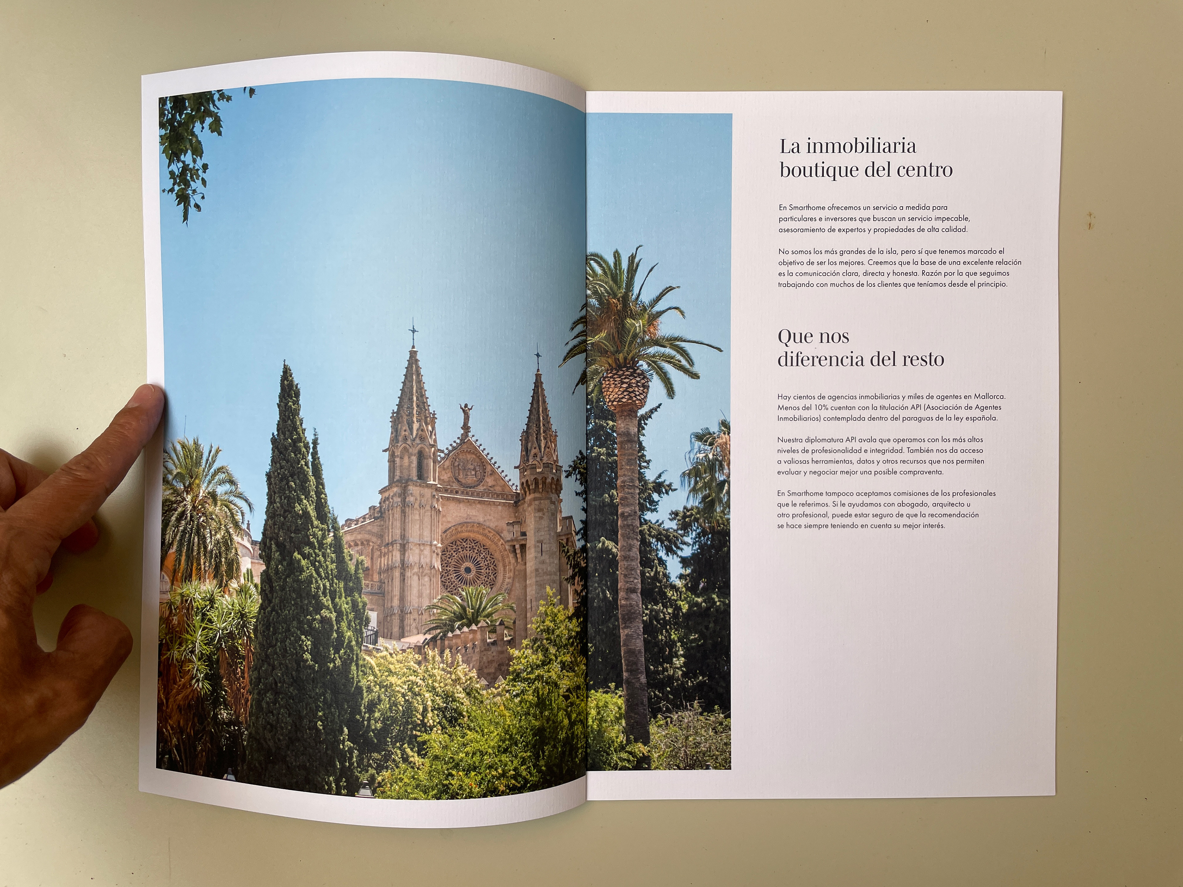 Nueva imagen corporativa para agencia inmobiliaria. Se ha eliminado el símbolo existente y se han unido las dos primeras palabras en una sola. Además, se han acentuado dos de las vocales con acento circunflejo y diéresis, respectivamente, dándole así un aire nórdico-centroeuropeo, la principal clientela de la agencia. También se ha diseñado un folleto corporativo. New corporate image for real estate agency. The existing symbol has been removed and the first two words have been merged into one. In addition, two of the vowels have been accented with a circumflex accent and an umlaut, respectively, thus giving it a Nordic-Central European air, the agency's main clientele. A corporate brochure has also been designed.